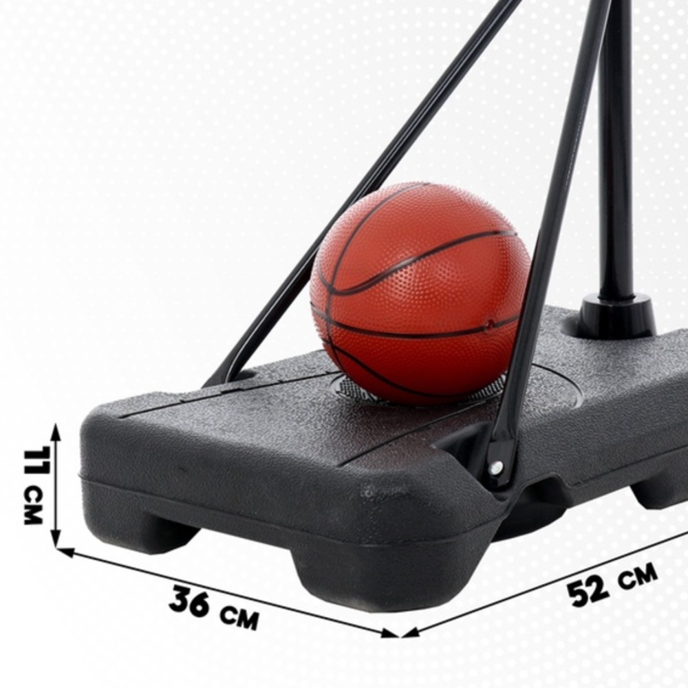 | ნაკრები: | კალათბურთის დასადგამი ფარით, ბურთი, გასაბერი ნასოსი, ჩასადები ყუთი. |