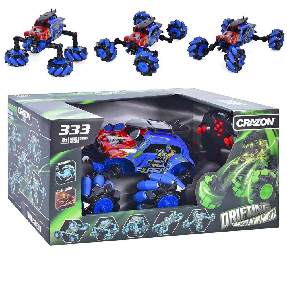 Crazon ტრანსფორმატორი მანქანა როლიკებიანი ბორბლებით / დარტყმაგამძლე საბავშვო მანქანები / კასკადიორი ჯიპი / რადიომართვადი მონსტრი მანქანა / საბავშვო მანქანა / საბავშვო მანქანები / პულტიანი მანქანა / 360 გრადუსით მბრუნავიდი მანქანა / დისტანციური მართვის მანქანა Crazon Transformation Monster