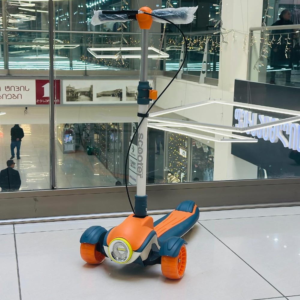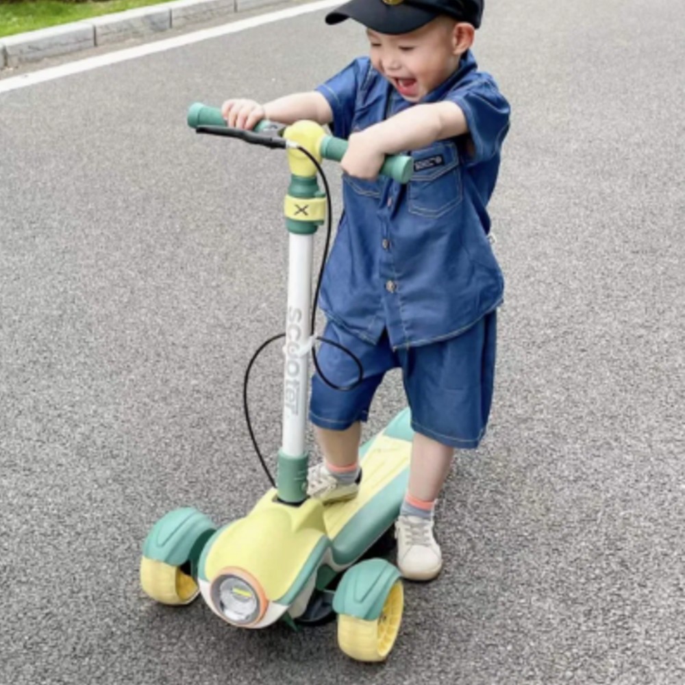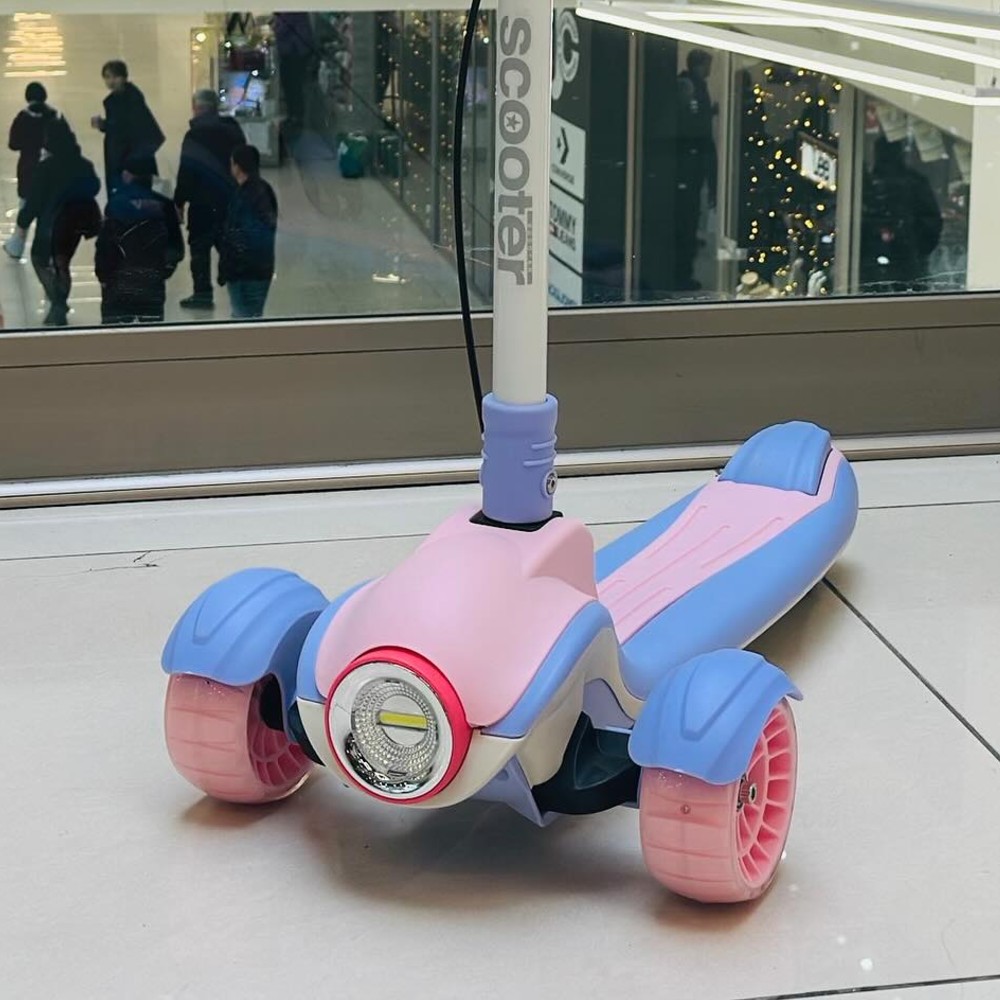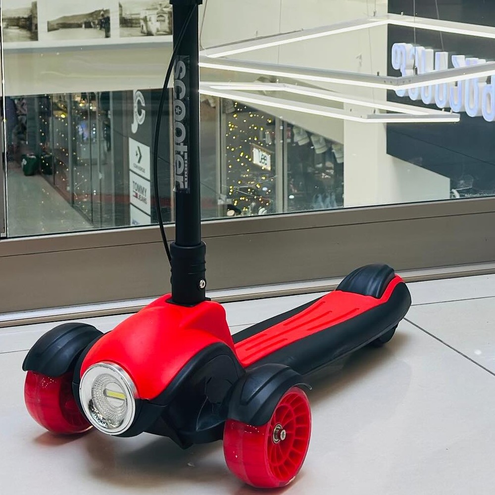 Складной детский самокат / Детские самокаты / Самокат со светодиодными фарами и музыкальным сопровождением / Детский складной самокат / Детский самокат / Трехколесный самокат