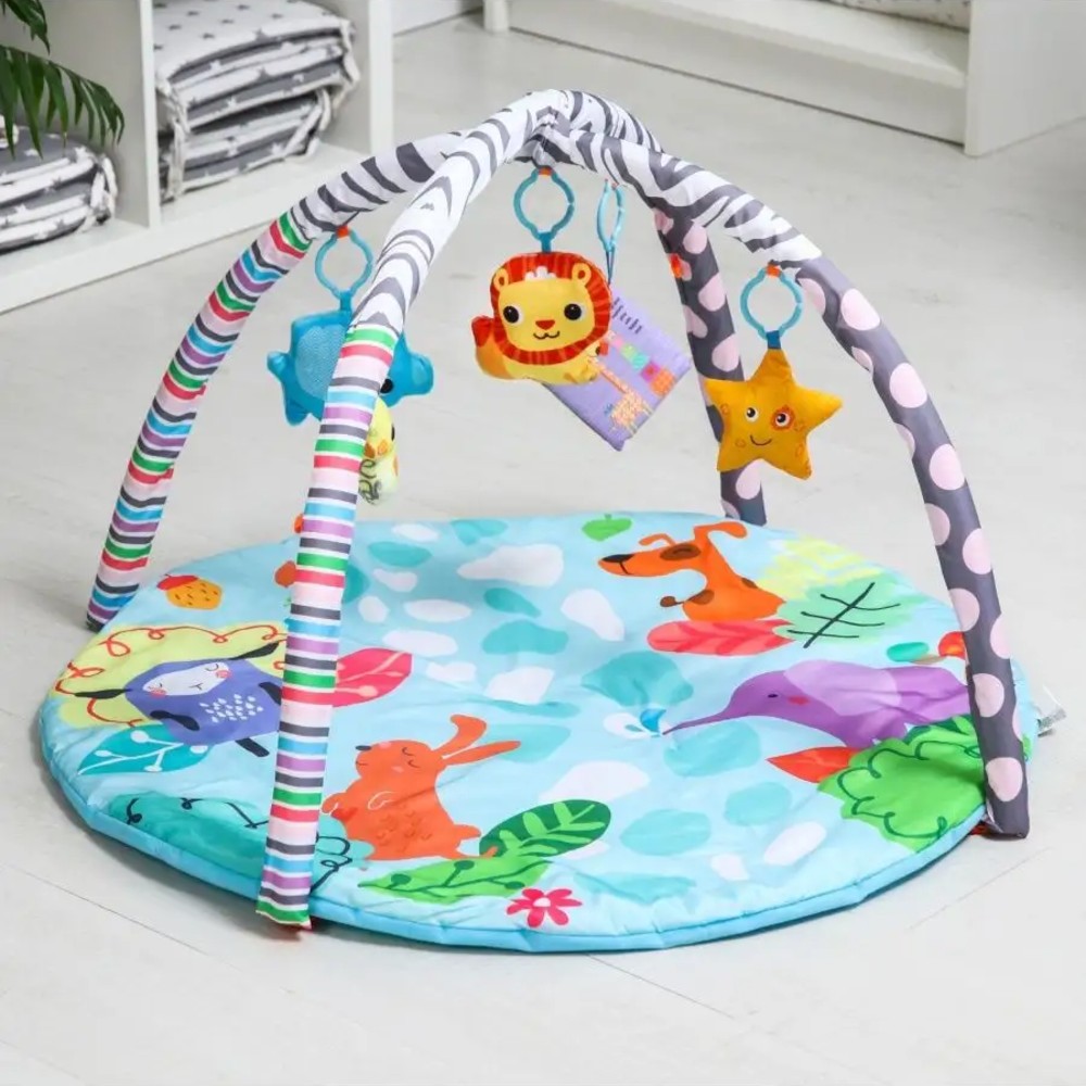 | Содержимое: | Коврик, 2 мягкие дуги и подвеска, плюшевые подвески, 5 мягких игрушек (поющая игрушка, погремушка ), |